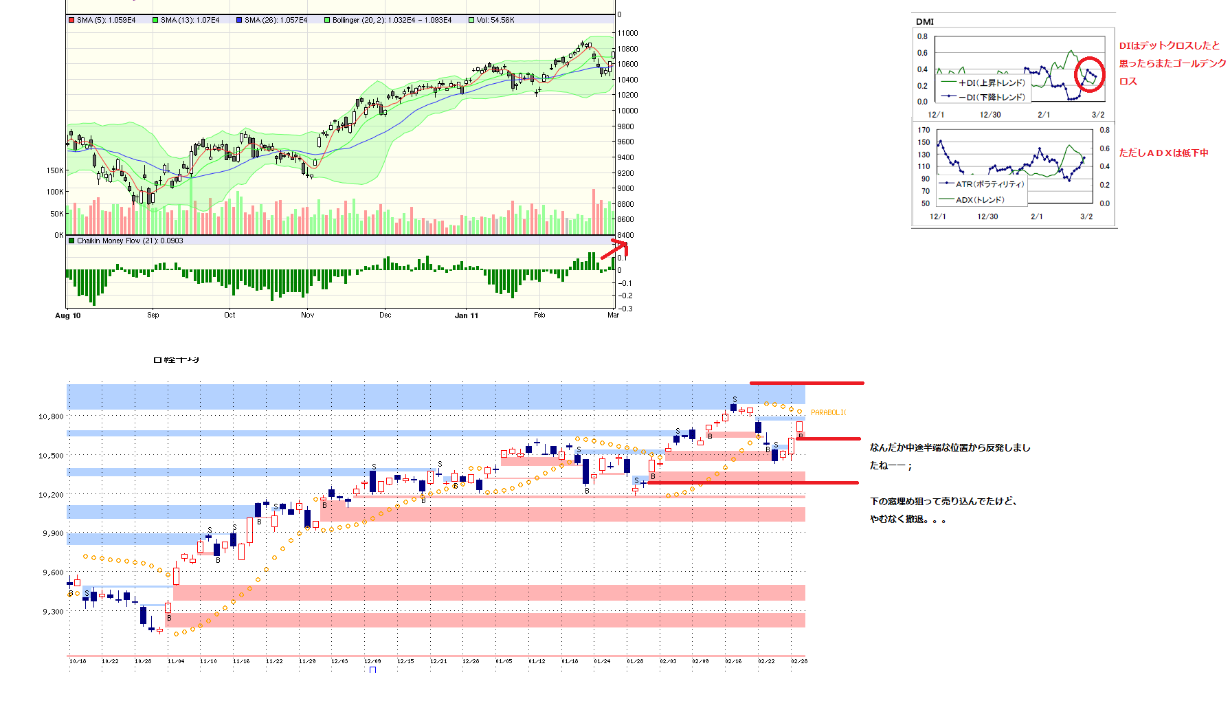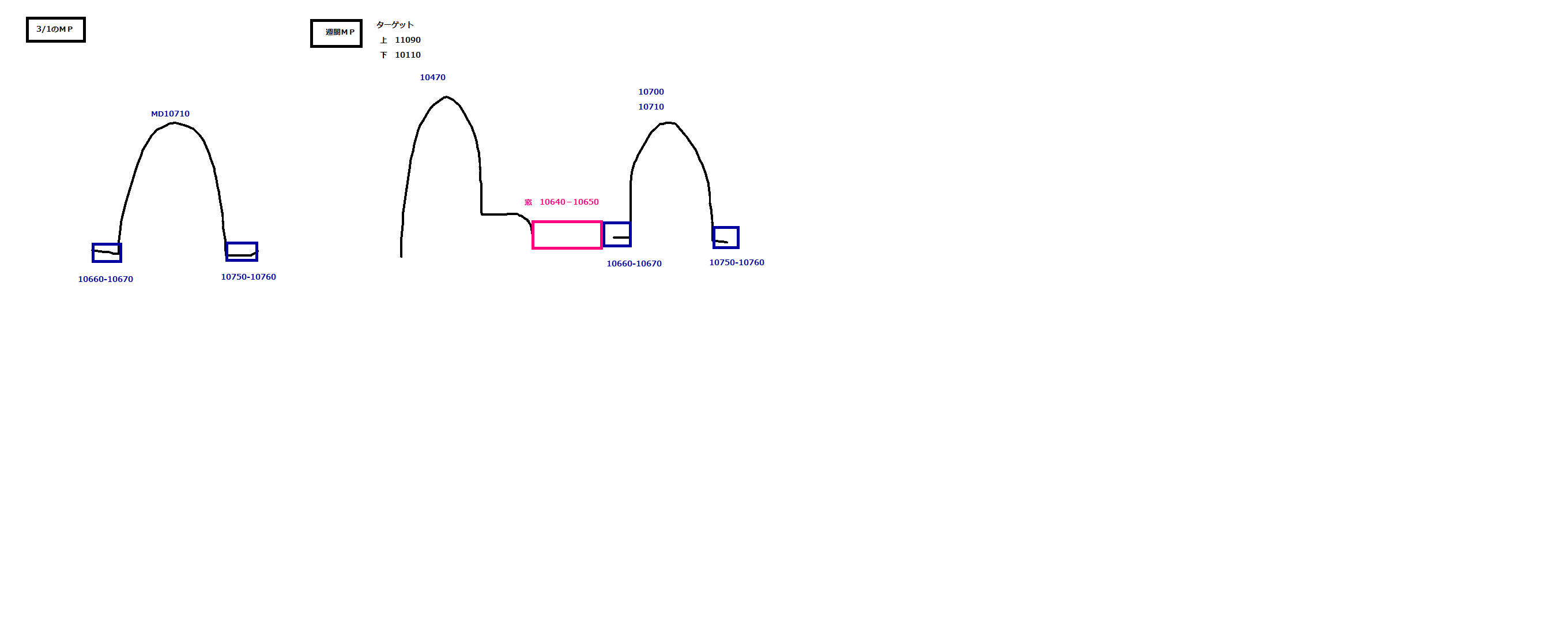 ☆10600あたりで戻り天井つけて再下落、、、の三尊シナリオを描いていたのですが、