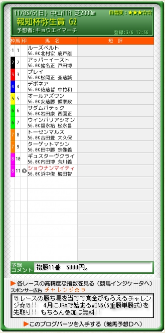 複勝11番 5000円。