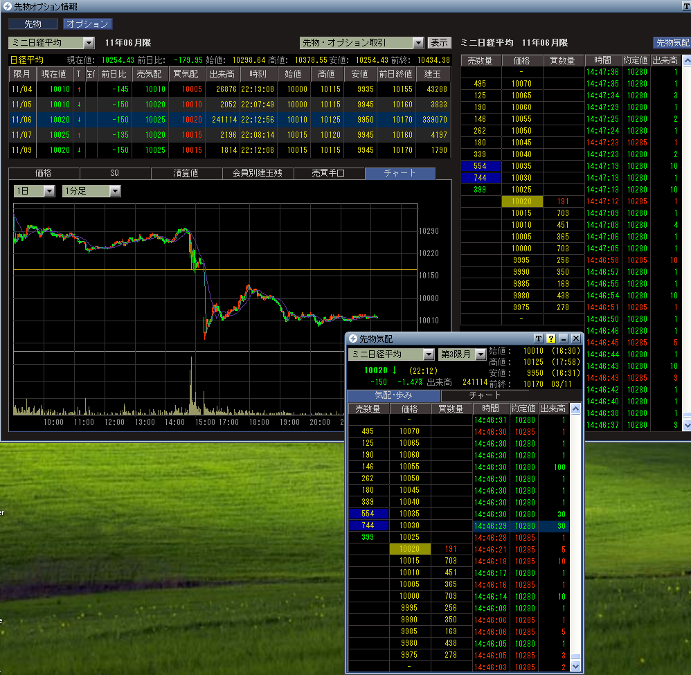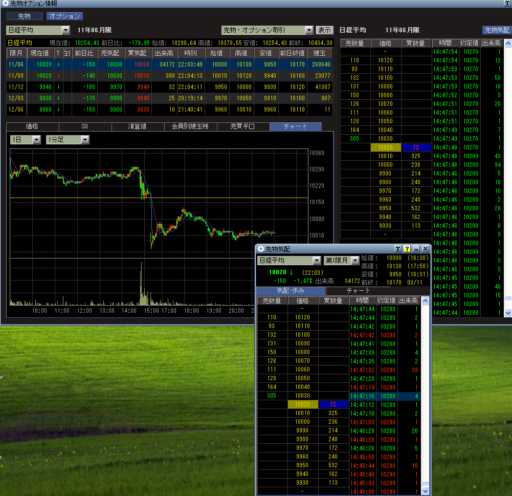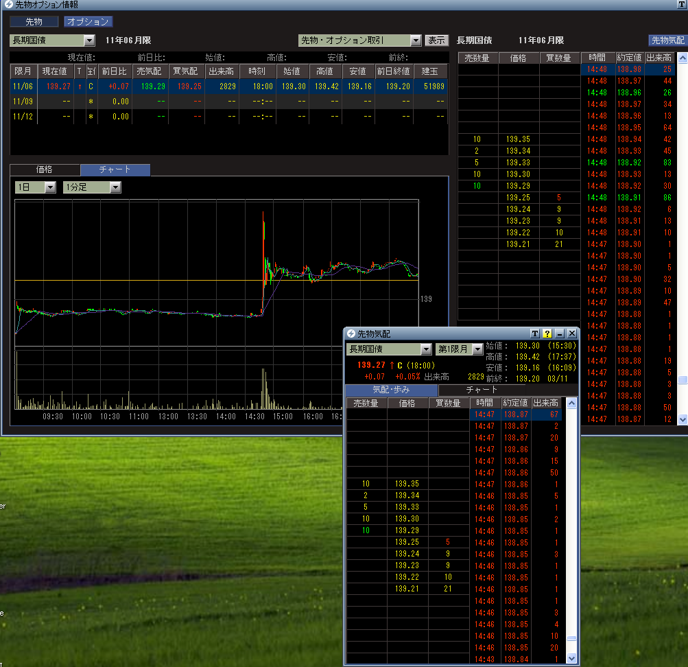 東北地方太平洋沖地震が発生したときの先物の歩み値です。