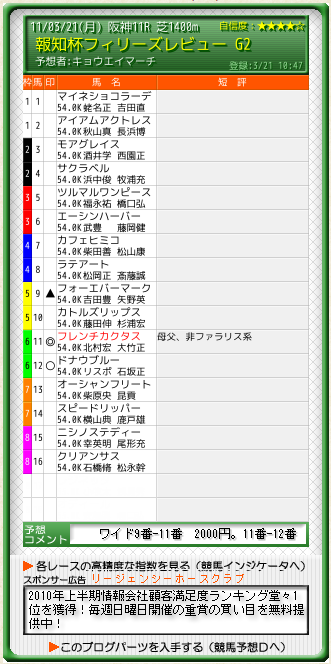 今日は阪神競馬場でフィリーズレビューが行われます。