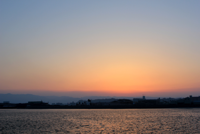写真は夕日が落ちた鹿児島です。