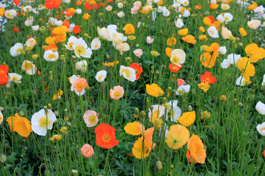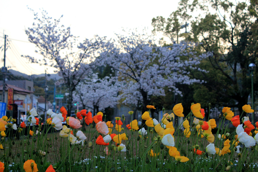 日没に公園の前を通りかかったら、ポピーが沢山咲いていました。