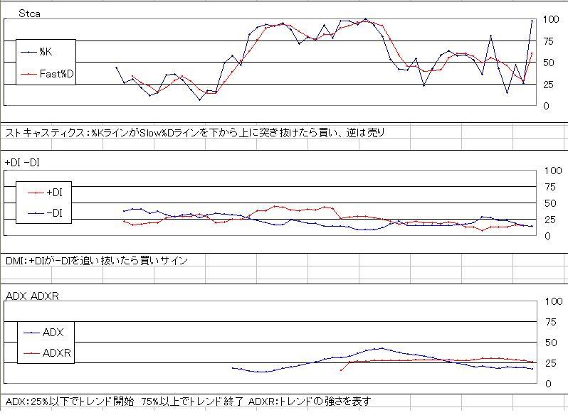 ADX,ADXR:25%以下なのでトレンド継続中?なんかマクロ間違えてるかも・・・(;´∀`)一応+1