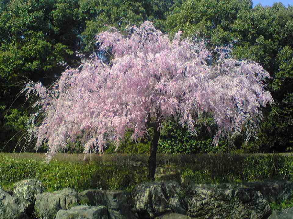 しだれ桜でしょうか、その下で小休憩したいですね。