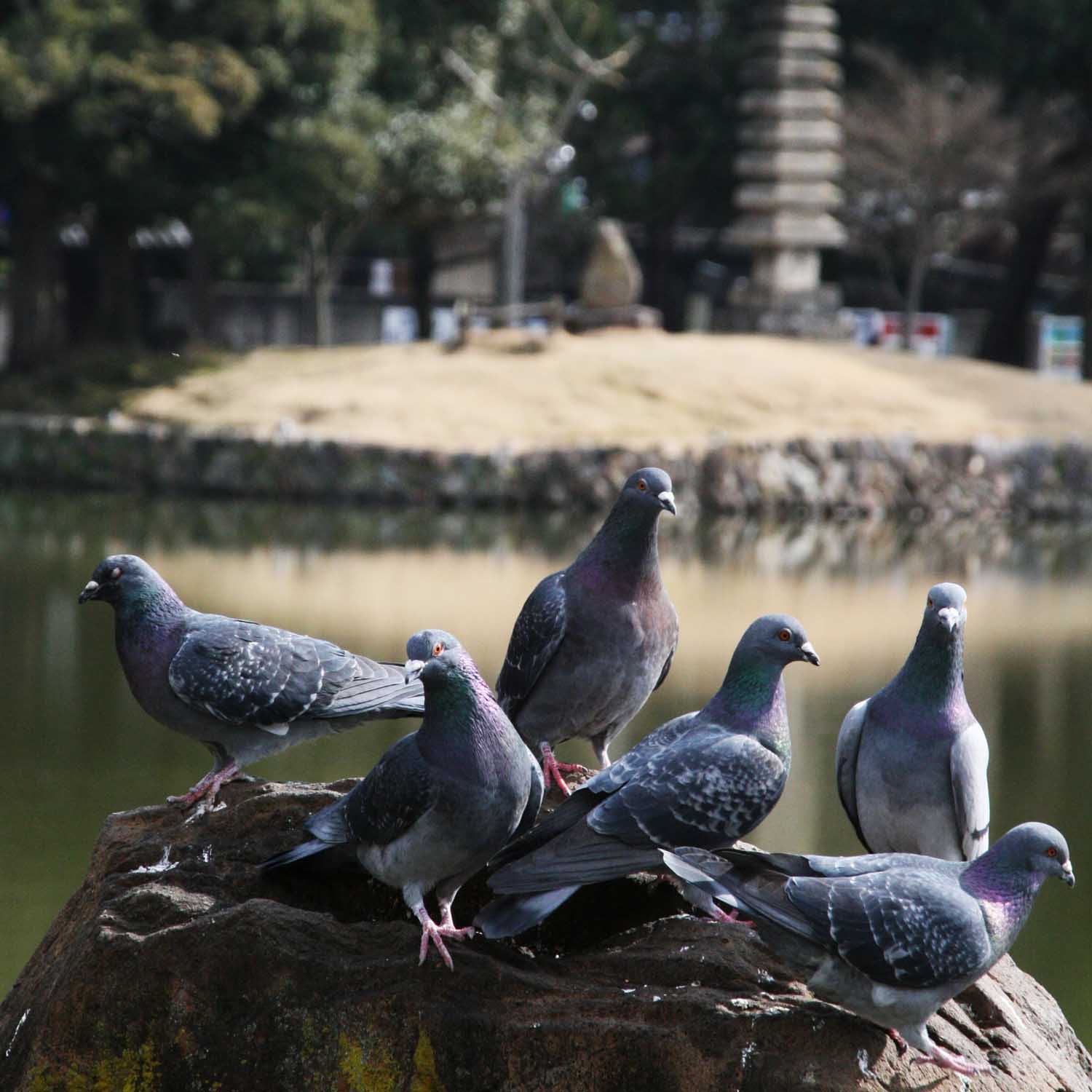 岩の上は、鳩の止まり場