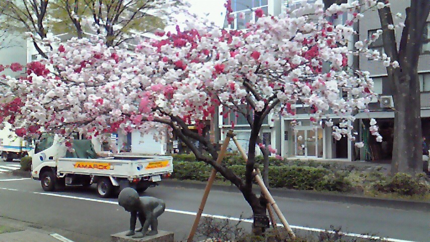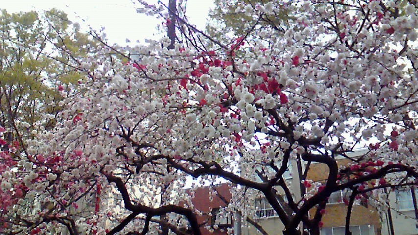 先日桃が咲いている通りを散歩した所、1本の木なのに、花の色が混じっている事に気がつきました!