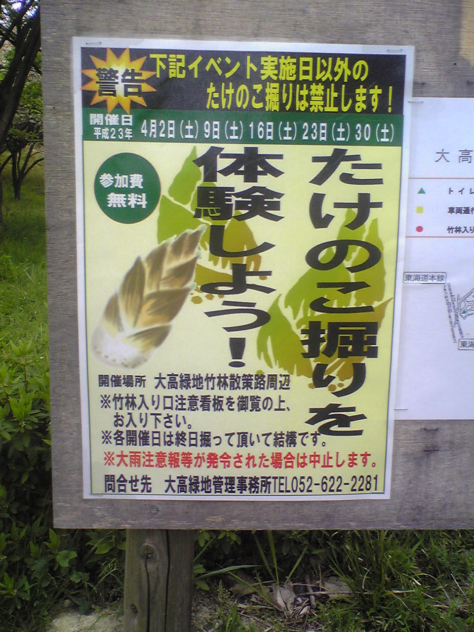 たけのこが出ていました。大高緑地に行って見て来たら、ようやく出始めたようです。