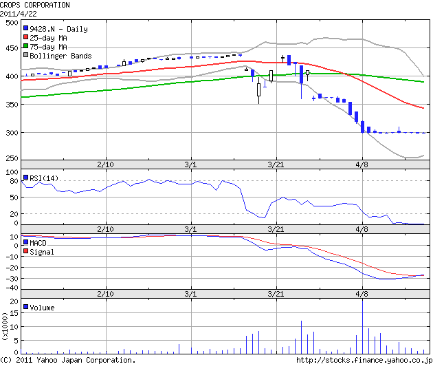 その後も続落し4/8には300円まで下落しました。