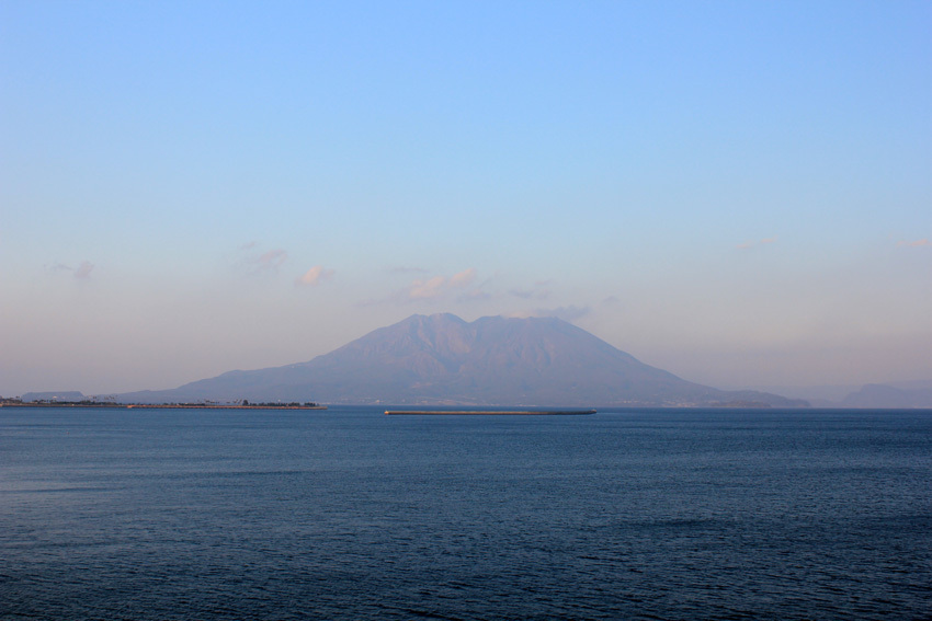 桜島の左手前に移ってるのが、散歩に行く港です。