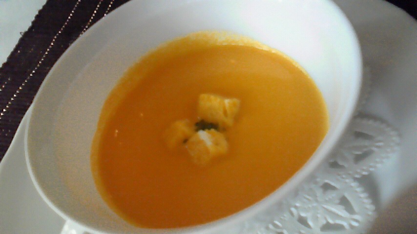 この日のランチは、その他にもスープ。こちらが、ちゃんとそのお店で濾して作りましたよ、という感じの味のポタージュです。