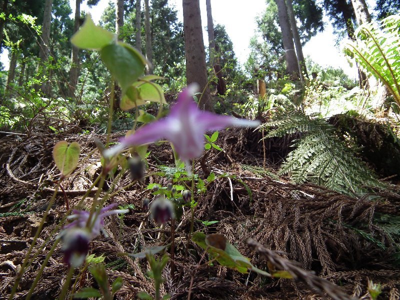 北陸の山地にあるイカリソウは、白色の花ばかりです