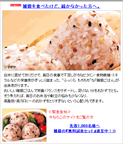 でも、雑穀米は元カージナルスの田口壮をTVCMに起用するなど、きっとやずやが今最も力を入れている商品なのでしょうね。