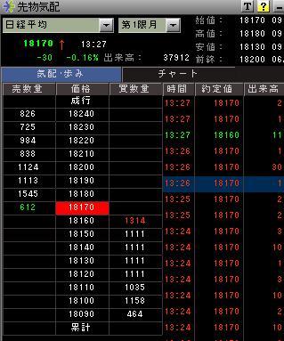 普段はこんなに厚くないんですけどね。動くお金としては、先物は1枚1800万円位(必要証拠金は60万円程度)なので、一段あたり180億円位ですね。