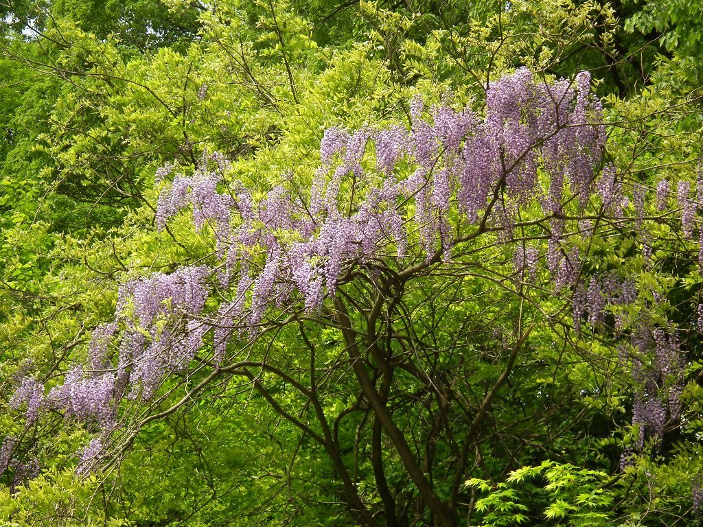 満開で花全体が見渡せ、さながらふじ色の絹織物を木にかけたようです^^