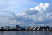 くっくり見えていた桜島も夕方近くになって、透明度が大分落ちてます。