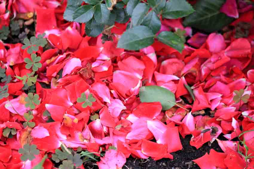 薔薇の下には沢山の薔薇の花びらが有りました。