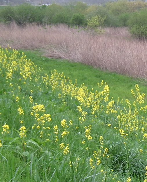 菜種油を採るための菜の花よりは、肥料やらない野生のカラシ菜は全体にきゃしゃです
