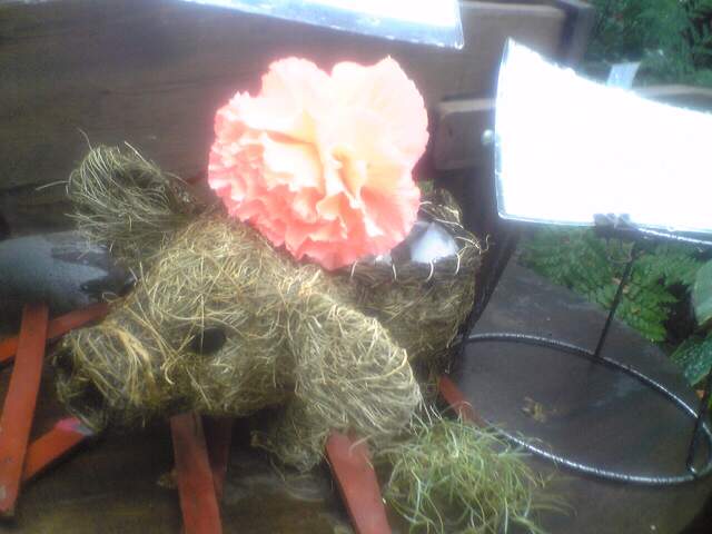 ヘチマたわしのブタちゃんです。かわいいのに花が乗っています。農業センターにて