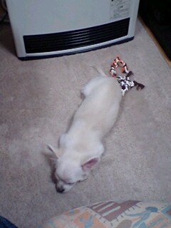 >ガスファンヒーターの前で愛犬『マシュ』は、トロ~ンとした目で・・・