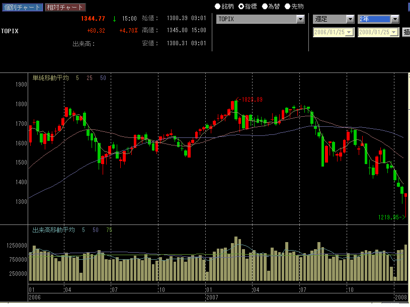ブッシュ大統領と議会が景気対策で合意したことを好感したようです。先週の新規失業保険申請件数が少なかったことも好材料。中古住宅販売は相変わらず駄目でしたが材料視されませんでした。長期金利は結構リバウンドしました。