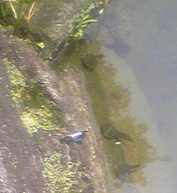 トンボがカエルの子のおたまじゃくしに狙われているかのようです。尻尾が危なそうです。