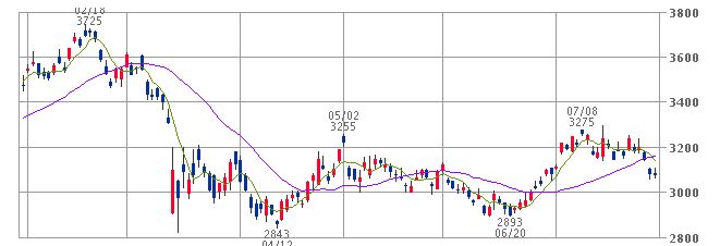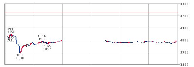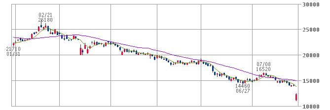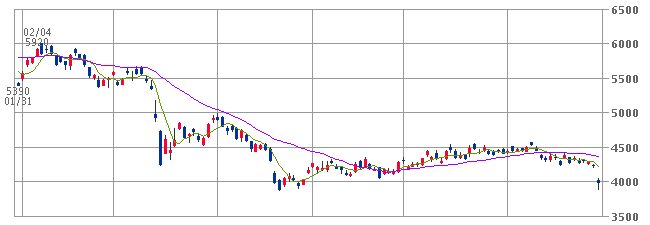 ストップ安。一時3000円弱の値下げ。