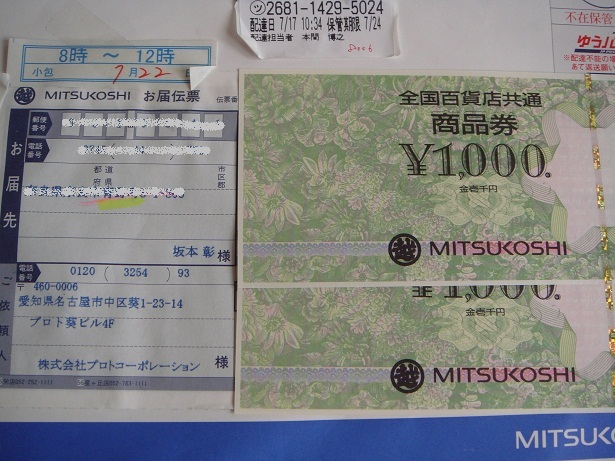 デパート商品券2,000円分ですが、これが一番役に立ちます。