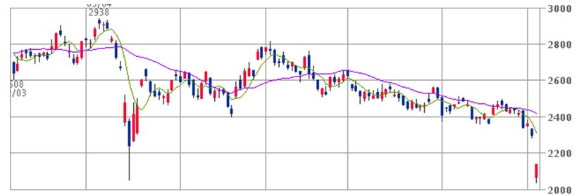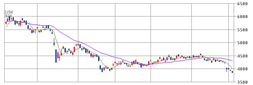 本来なら損切りだろう。どこまで下げるか予測不能。