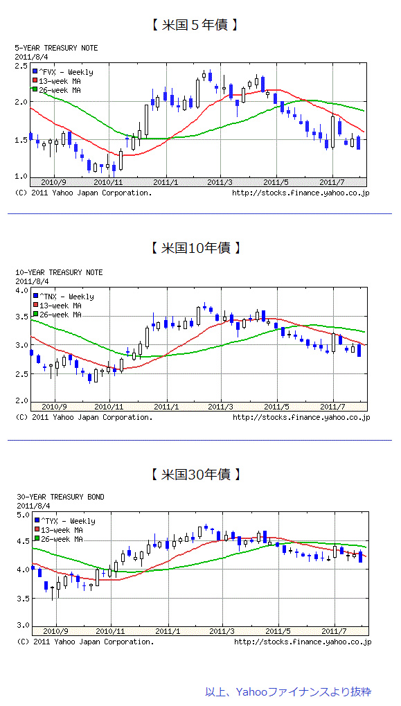 5年、10年、30年債は3月ごろから金利下落基調(=債券価格上昇)。