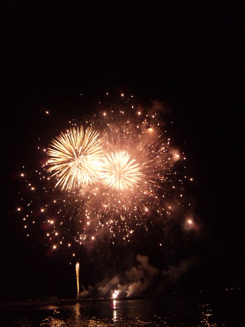 音楽を流しながら花火の鑑賞(「  ̄ー ̄) ドレドレ・・・っていいですなぁ