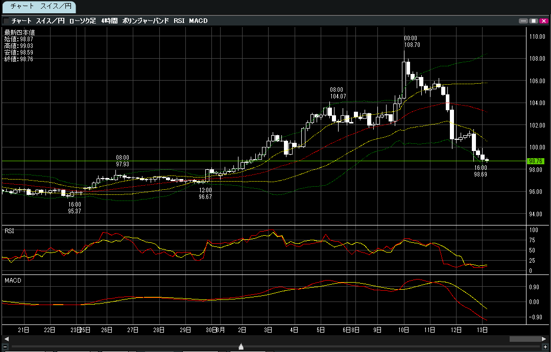 ただし、このお話は週の真ん中から急展開 スイスフランの様子が変わります。