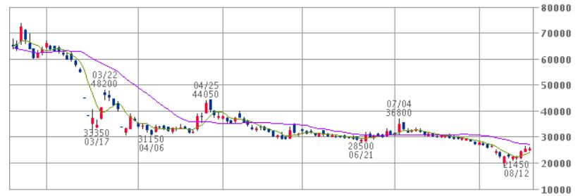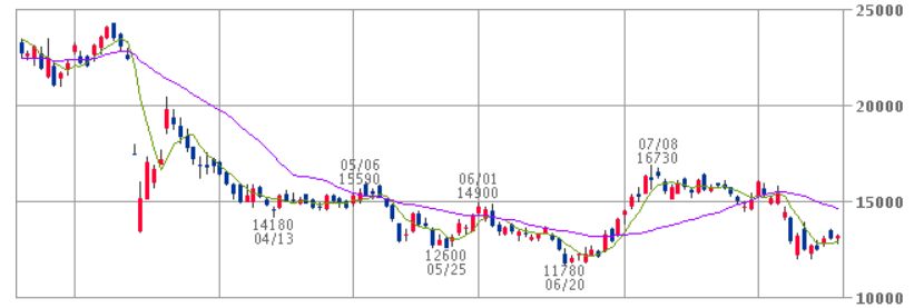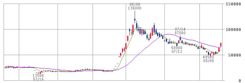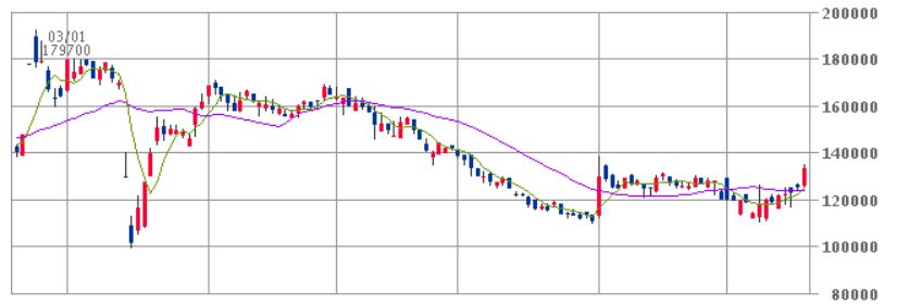 しかしこれを横ばいor下落の判断が付かず、この先予測不能。