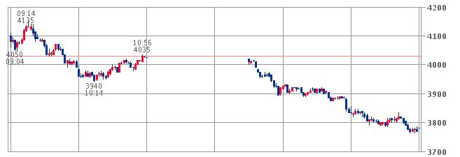 13:40売り、3875円。→早々に撤退。