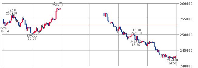13;40売り、247700円。→早々に撤退。