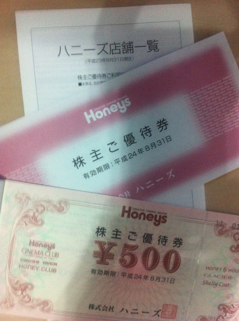 今回は 10株 × 2 なので、2,000円分のハニーズ商品券です。