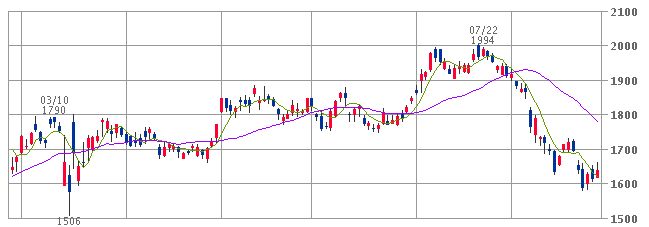 終値、1638円。