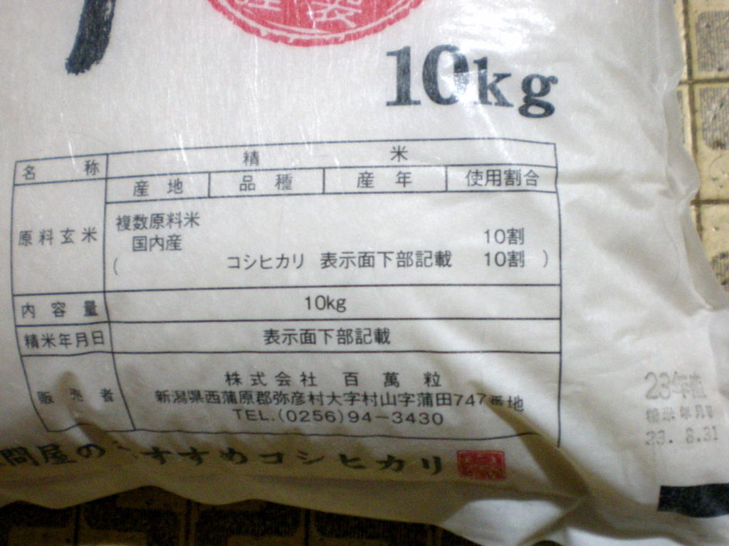 でも 、23年度の 新米ならば “ 新潟県産 ” では、 ないですねぇ ~~ (^O^)/ 8月末では 精米はムリ
