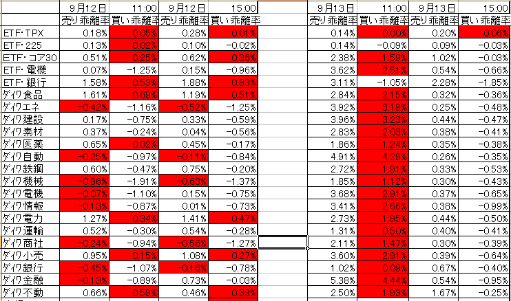 本日の前場、大和17業種ETFの乖離率が大きくプラスになりました。