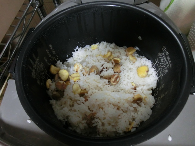 栗は鬼皮をむいて、圧力なべで6分間蒸します