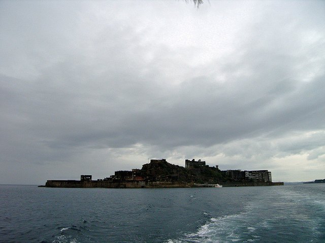 軍艦島とよばれるこの島はもともとは小さな瀬で、現在の1/3
