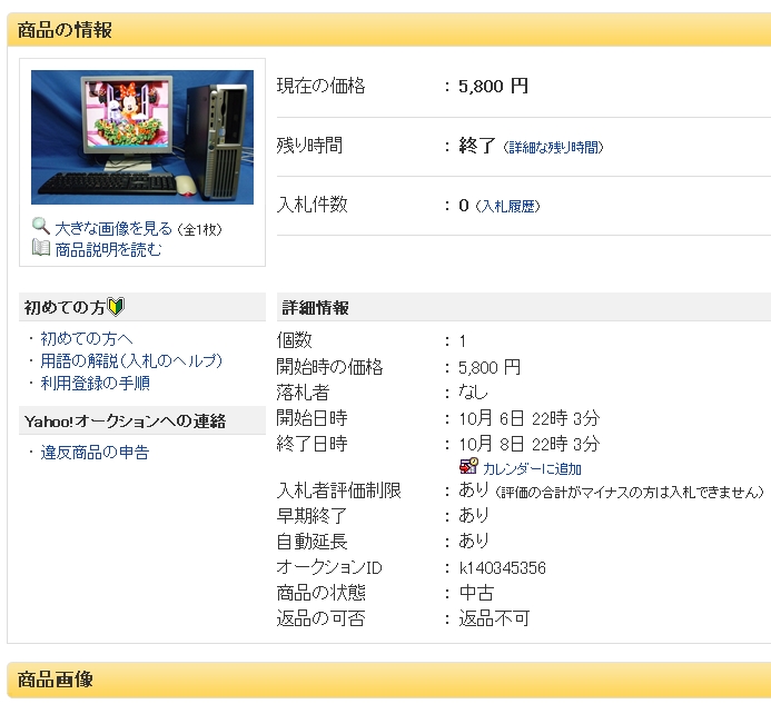 ヤフオクで hp desktop-PCが、 本体、キーボード、マウス、17型液晶の4点セットで、