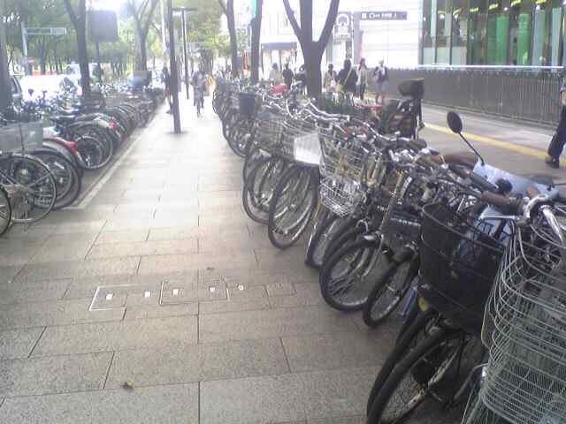 松坂屋の前はまるで。ちょっと前の中国のよう、自転車整理の人がすごくいる。
