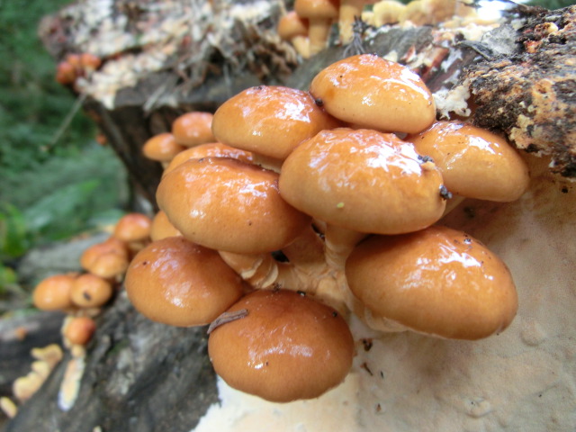 今日の山歩きは、ナメコ、ナラタケ、ウラベニホテイシメジ、杉平茸、ヌメリスギタケ