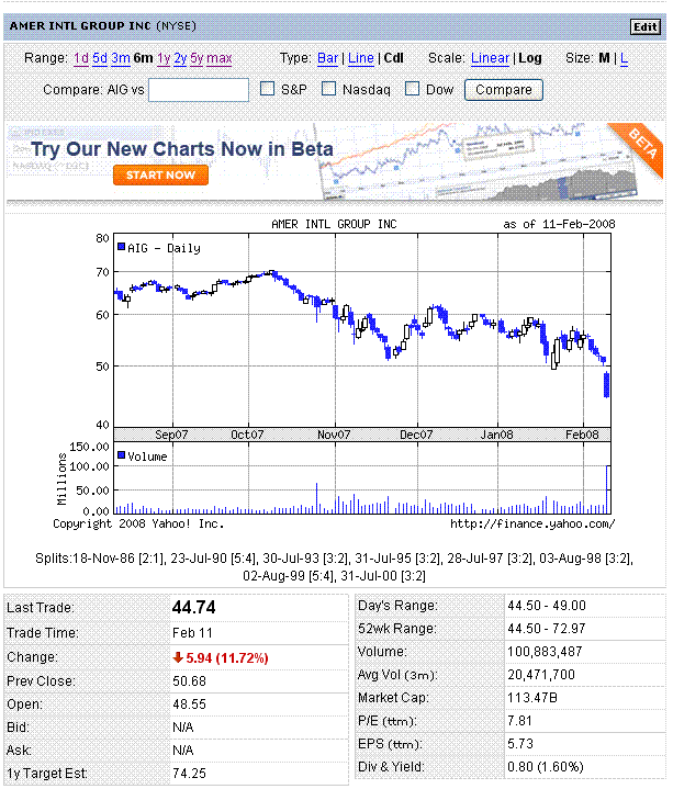 ・米AIG、サブプライム損失4倍の5200億円に・10―11月
