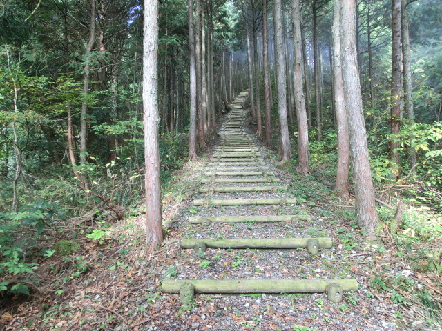ヒノキの山で、頂上までヒノキ材の段段坂です・・・長いこと長いこと^^;