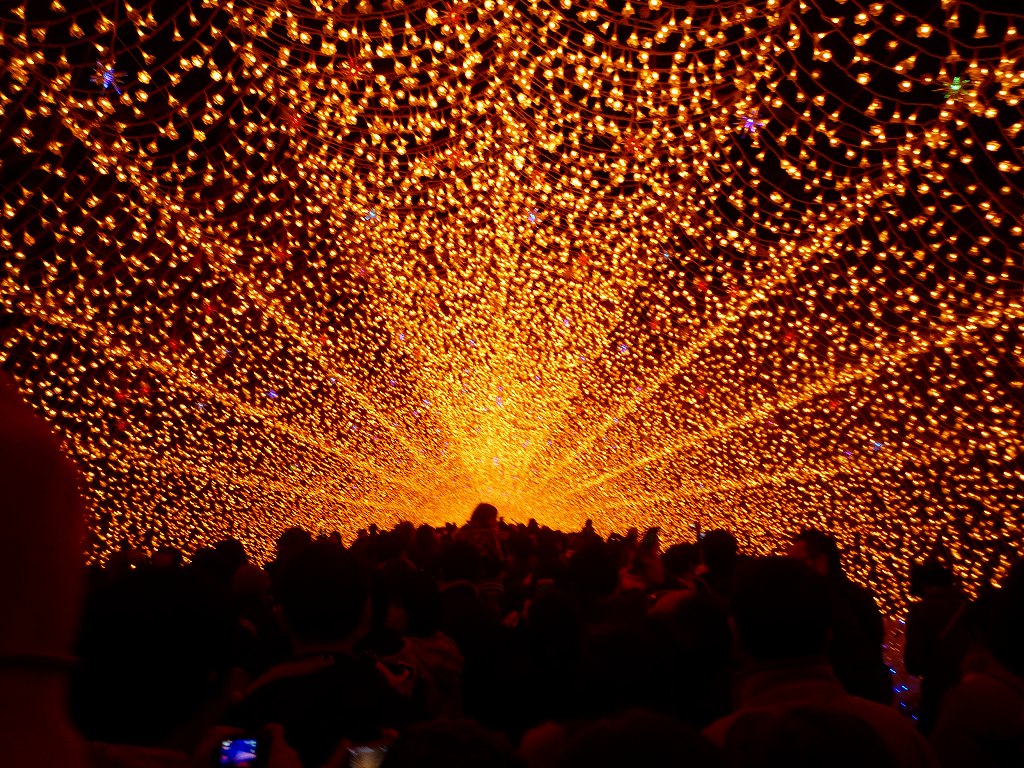まさに見渡す限りの電飾のトンネル、池や草原。