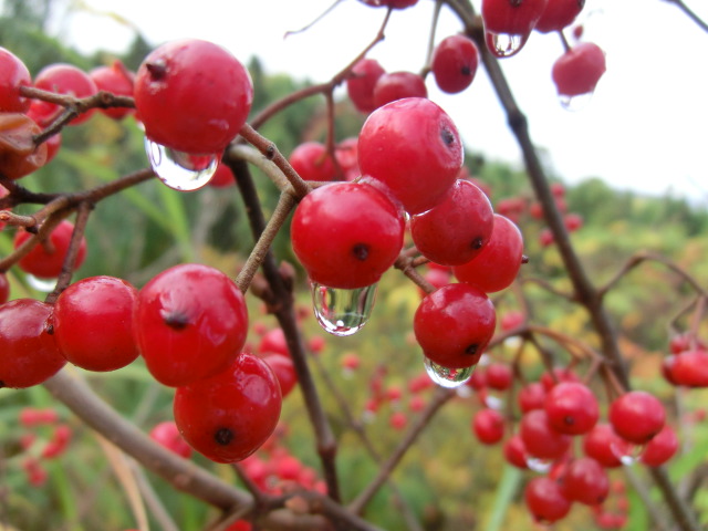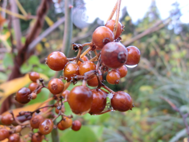 初秋のメグスリノキの濡れた実です