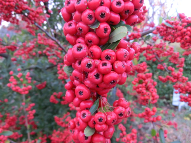 まっすぐなドウダンツツジの赤・・・きれいです。