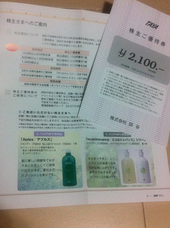 とりあえず、今回は優待券が届いたので、必要事項を書いて