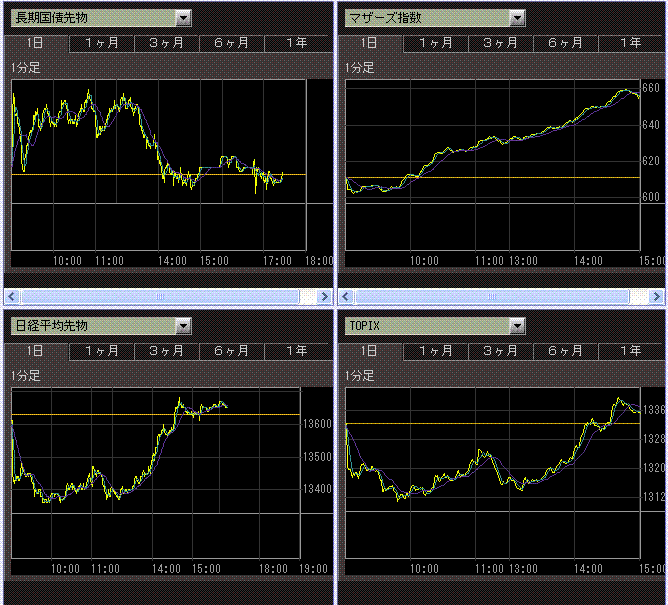 NY市場安を受けて、前場は日経平均13400円前後をうろうろ。後場からジリジリ上がってきて午後2時頃に13500円をブレークすると日経平均先物にドカドカと買いが入り続け、前日比とほぼ変わらない水準まで戻しました。先物手口を見ても特に目立って買い越しのところは無かったですし、いったいあの買いは何だったんだんでしょう。